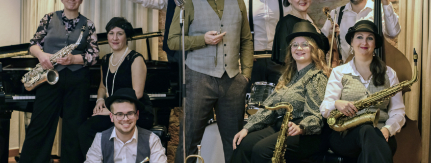 Wir präsentieren Ihnen: Das Tanz- & Salonorchester El’Sava mit seinem Sänger Sebastian Heun.